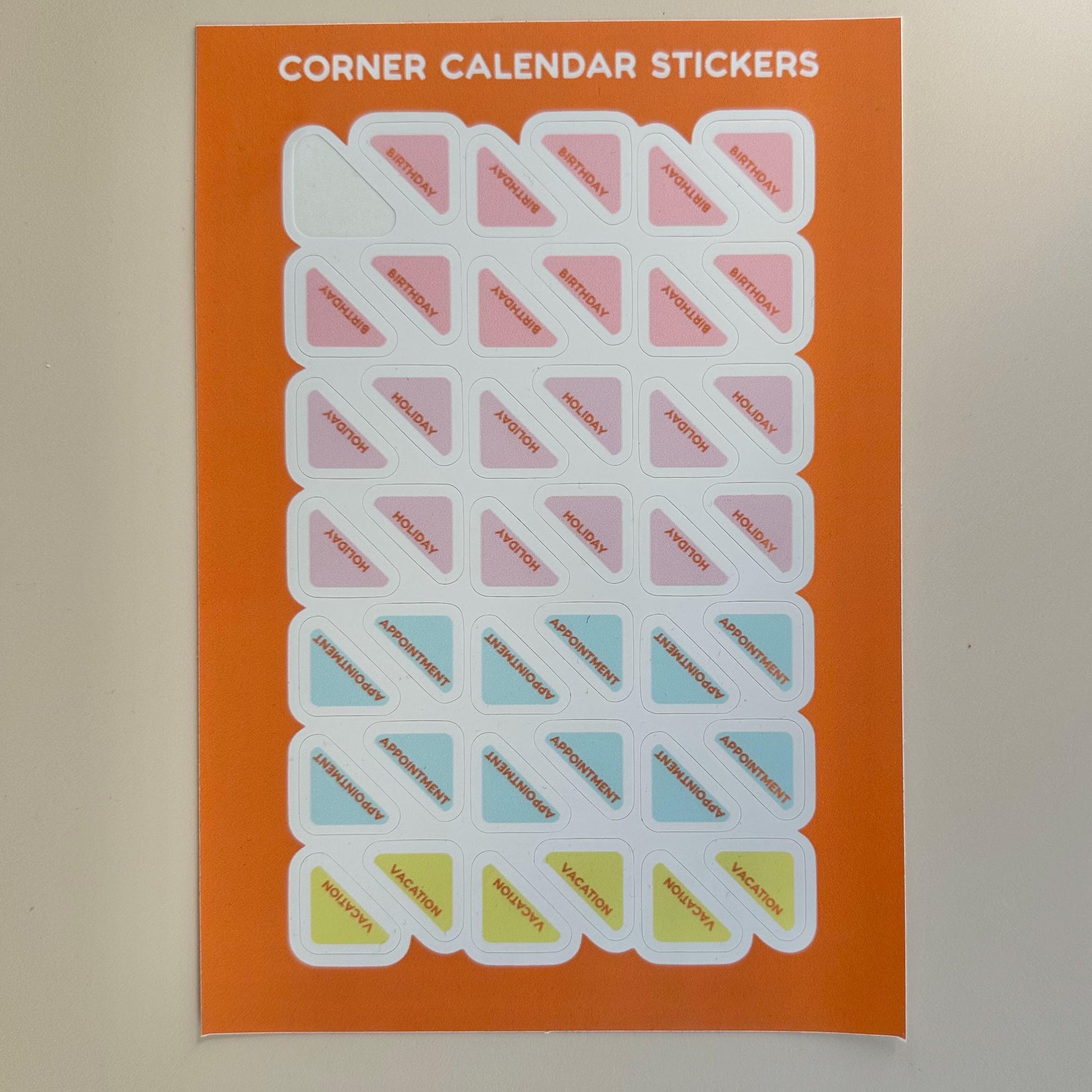 Corner Calendar Sticker Sheet